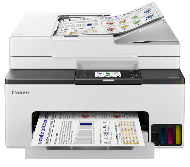 A Canon MAXIFY GX2010 é uma impressora multifuncional sem fio MegaTank projetada para pequenas empresas, oferecendo as funções de impressão, cópia, digitalização e fax.